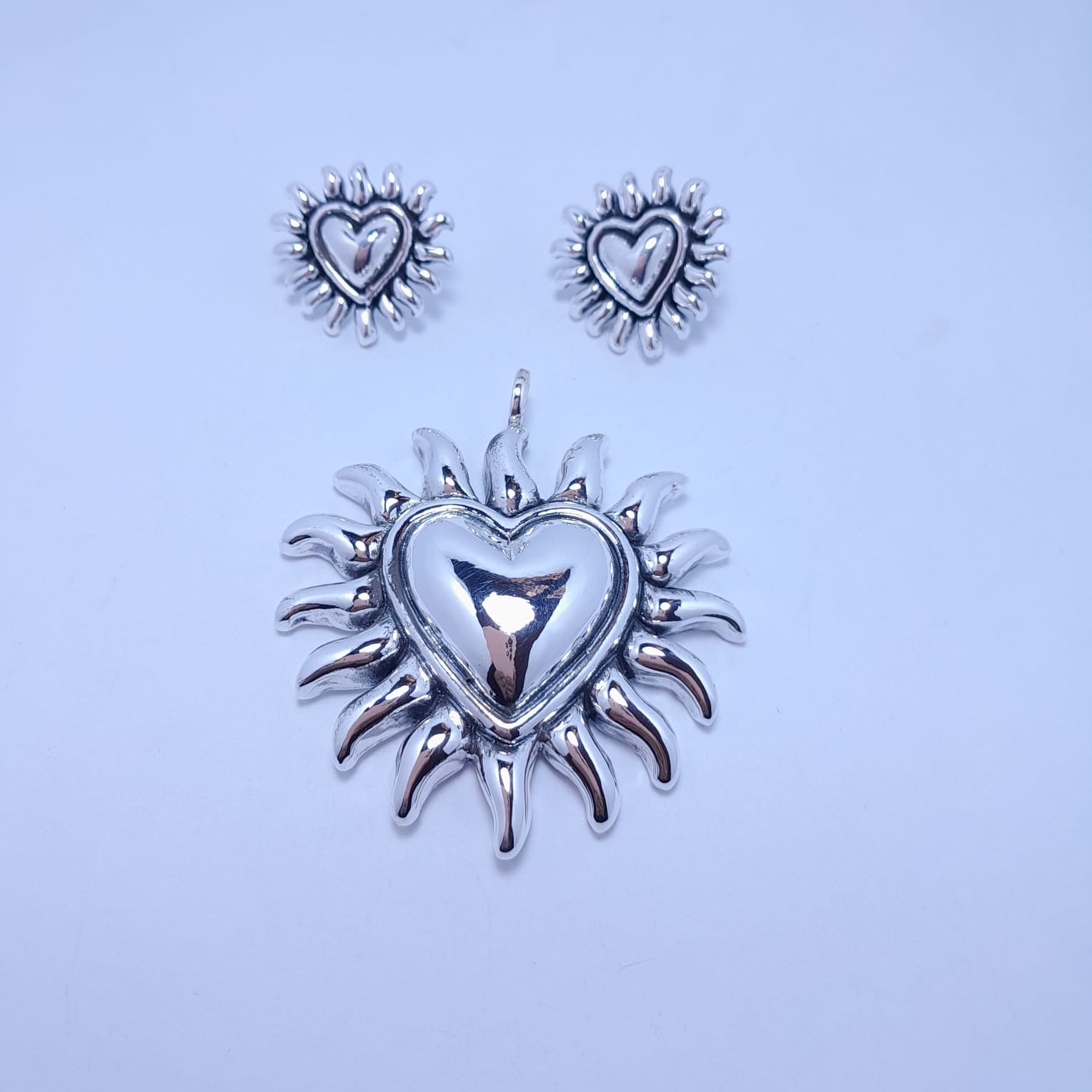 Juego de corazón resplandor en plata .925