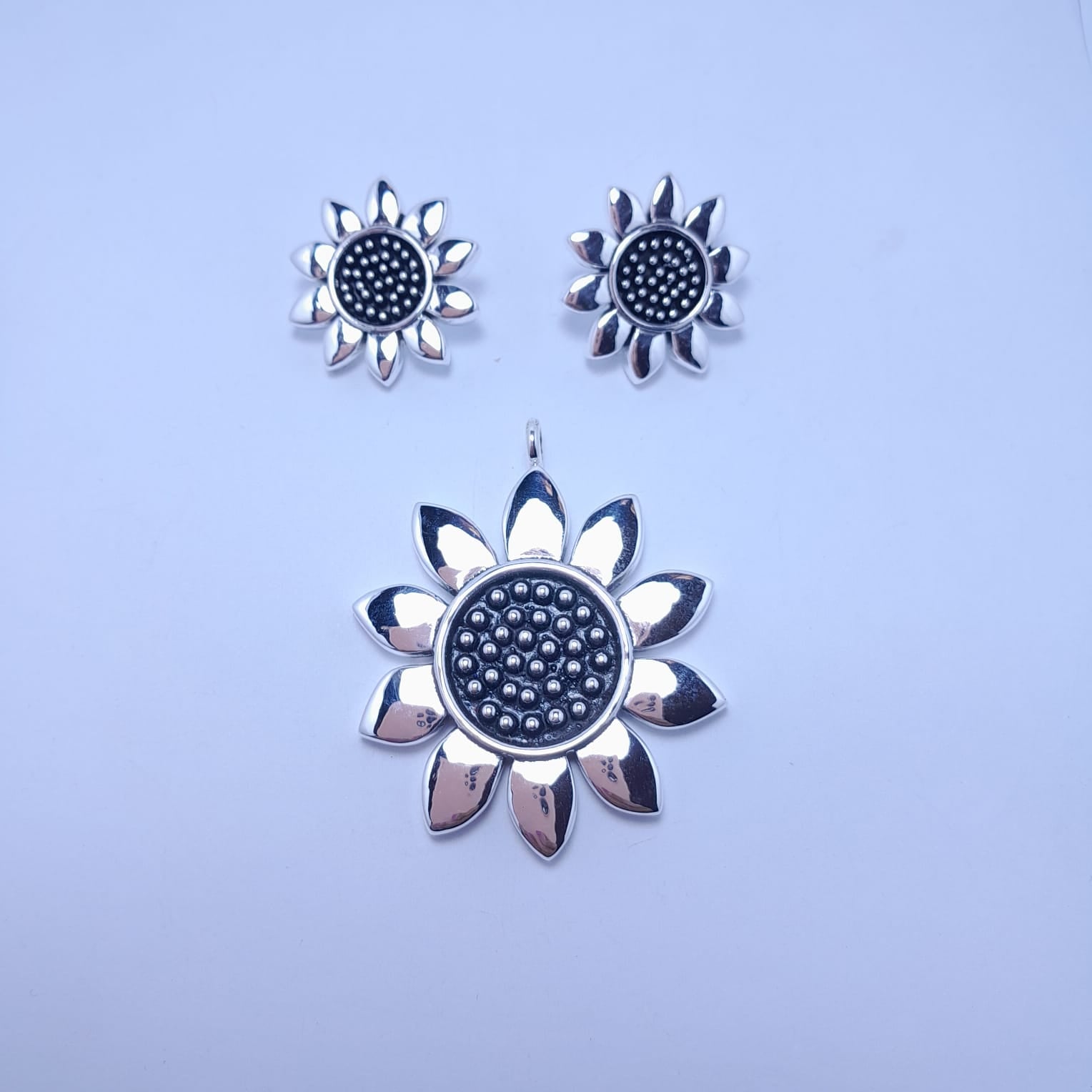 Juego de girasol electroformado en plata .925